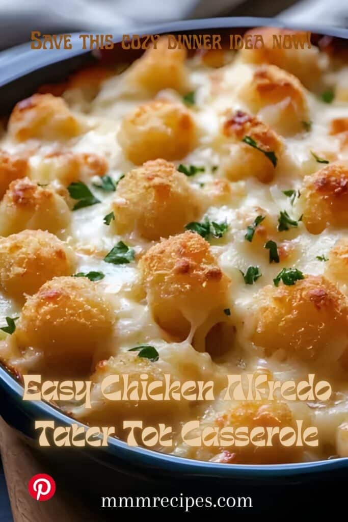 This Chicken Alfredo Tater Tot Casserole is everything you need for a cozy, comforting meal. With its creamy sauce, tender chicken, and crispy tater tots, it’s sure to become a family favorite. Whether you’re making it for a weekday dinner or a special occasion, this dish delivers on taste and satisfaction every time.