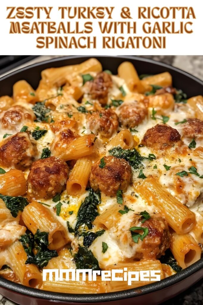 There’s something so satisfying about a dish that brings together hearty, flavorful meatballs with a comforting bowl of pasta. These Zesty Turkey & Ricotta Meatballs with Garlic Spinach Rigatoni are exactly that—a delicious balance of creamy, zesty, and savory flavors. Juicy turkey meatballs infused with lemon zest, Parmesan, and ricotta are paired with garlicky, sautéed spinach and rigatoni for a meal that’s both wholesome and indulgent.